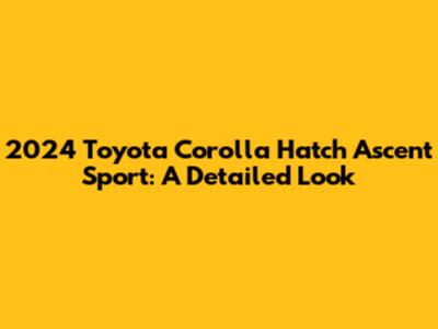 2024 Toyota Corolla Hatch Ascent Sport: A Detailed Look