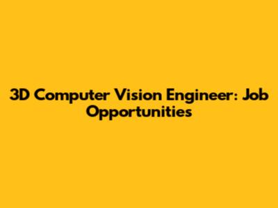 3D Computer Vision Engineer: Job Opportunities