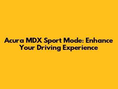 Acura MDX Sport Mode: Enhance Your Driving Experience
