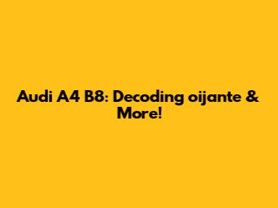 Audi A4 B8: Decoding 'oijante' & More!