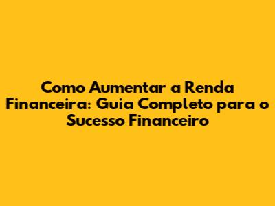 Aumente Sua Renda: Estratégias Financeiras Para O Sucesso