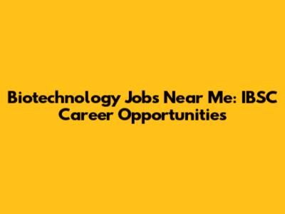 Biotechnology Jobs Near Me: IBSC Career Opportunities