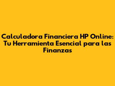 Guía Paso a Paso: Cómo Utilizar la Calculadora Financiera HP Online