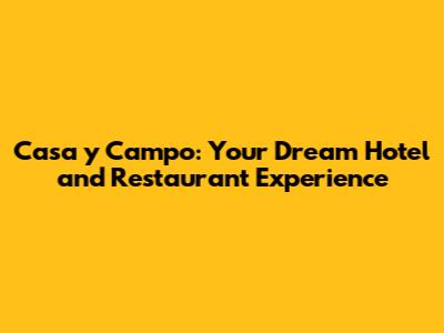 Casa Y Campo: Your Dream Hotel And Restaurant Experience