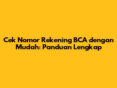 Cek Nomor Rekening BCA Dengan Mudah: Panduan Lengkap