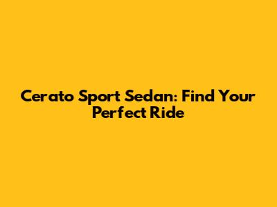 Cerato Sport Sedan: Find Your Perfect Ride