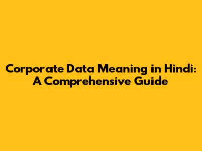 Corporate Data Explained: Hindi Meaning & Significance