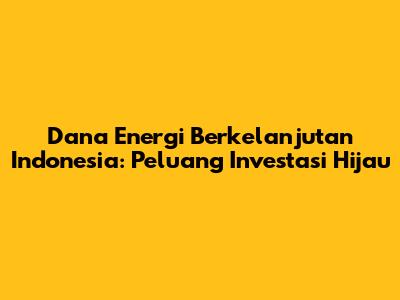 Dana Energi Berkelanjutan Indonesia: Peluang Investasi Hijau