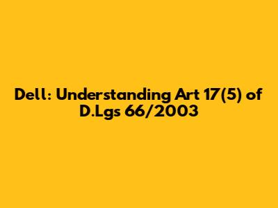 Hey guys! Ever found yourself scratching your head over some legal jargon, especially when it comes to work regulations? Today, we're diving deep into a specific piece of Italian legislation that affects many Dell employees and others working in similar sectors. We're talking about Article 17, Paragraph 5 of Legislative Decree 66/2003, which is all about rest periods and how they're managed. Trust me, understanding this can make a huge difference in your work-life balance and knowing your rights.