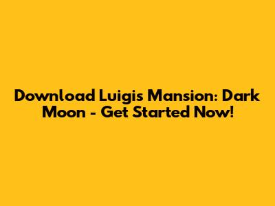 Download Luigi's Mansion: Dark Moon - Get Started Now!