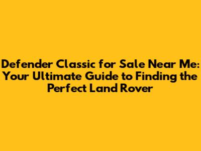 Find Your Dream Defender Classic: Local Listings & Buying Guide
