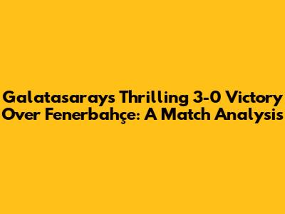 Hey guys, let's dive into one of the most talked-about matches in Turkish football history – Galatasaray's resounding 3-0 victory over their arch-rivals, Fenerbahçe. This isn't just about the score; it's about the intensity, the tactics, and the sheer dominance displayed on the pitch. This analysis will break down every crucial moment, examining the key players, tactical masterstrokes, and the overall narrative of this unforgettable derby. Get ready for a deep dive that'll have you feeling like you were right there in the stadium! This game was more than just a win; it was a statement. A declaration of intent. So, grab your jerseys, settle in, and let's dissect this epic clash.