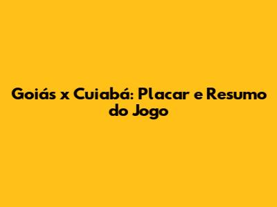 Goiás X Cuiabá: Placar E Resumo Do Jogo