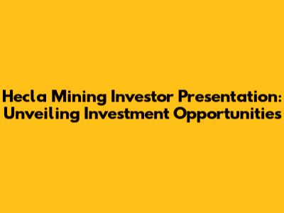 Hey everyone! Today, we're diving deep into Hecla Mining Company, a prominent player in the precious metals game. This isn't just about the numbers; it's about understanding the potential for growth and the opportunities that come with investing in silver and gold. I'll break down the Hecla Mining investor presentation, giving you the lowdown on what makes this company tick and why it might be a smart move for your portfolio. So, let's get started, shall we?