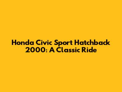 Honda Civic Sport Hatchback 2000: A Classic Ride