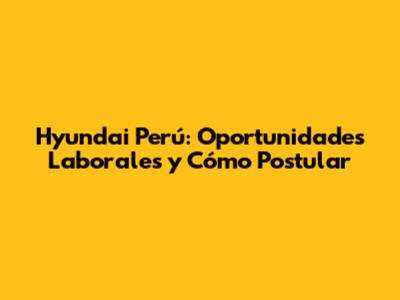 Hyundai Perú: Oportunidades Laborales Y Cómo Postular