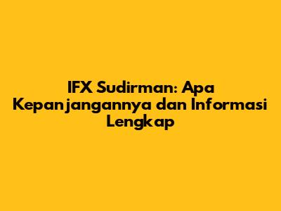 Hey guys! Pernah denger tentang IFX Sudirman? Mungkin sebagian dari kalian familiar, tapi banyak juga yang bertanya-tanya, "IFX Sudirman itu singkatan dari apa sih?" Nah, di artikel ini, kita bakal kupas tuntas tentang IFX Sudirman, mulai dari kepanjangannya, fasilitas yang ditawarkan, hingga informasi penting lainnya. So, stay tuned dan simak baik-baik ya!