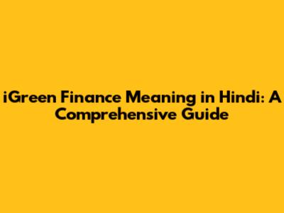Igreen Finance: Hindi Meaning & Sustainable Investing