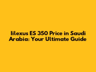 Iilexus ES 350 Price In Saudi Arabia: A Comprehensive Guide