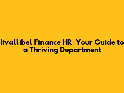 Iivallibel Finance HR: Your Guide To A Thriving Department