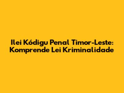 Ilei Kódigu Penal Timor-Leste: Komprende Lei Kriminalidade