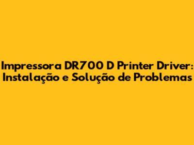 Impressora DR700 D Printer Driver: Instalação E Solução De Problemas