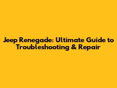 Jeep Renegade: Ultimate Guide To Troubleshooting & Repair
