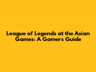 League Of Legends At The Asian Games: A Gamer's Guide