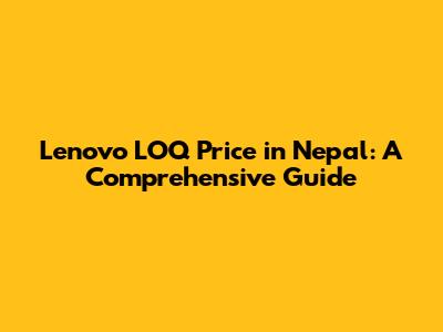 Lenovo LOQ Price In Nepal: A Comprehensive Guide