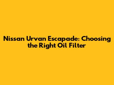 By keeping these points in mind, you'll be able to pick the best oil filter for your Nissan Urvan Escapade and keep it running smoothly for years to come! Drive safe, guys!