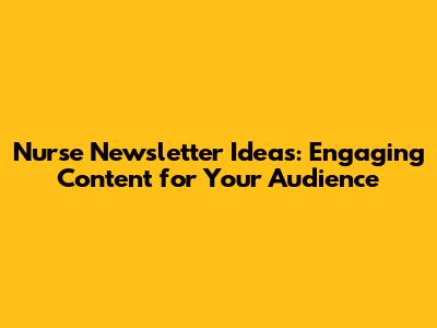 Nurse Newsletter Ideas: Engaging Content For Your Audience