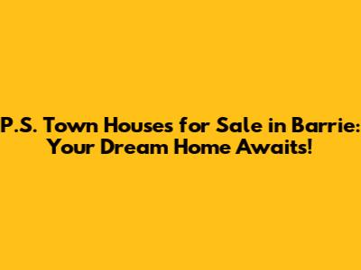 P.S. Town Houses For Sale In Barrie: Your Dream Home Awaits!