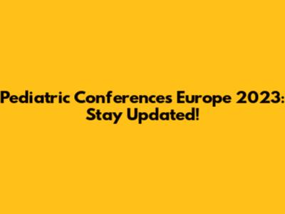 Pediatric Conferences Europe 2023: Stay Updated!