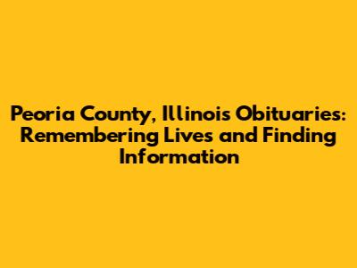 Hey everyone! Looking for information about obituaries in Peoria County, Illinois? You're in the right place! Finding details about someone's life after they've passed can be a sensitive but important task. Whether you're a family member, a friend, or simply someone who wants to learn more about the history of the area and its residents, knowing where to look for obituaries is key. In this guide, we'll dive deep into where you can find Peoria County obituaries, what information you can typically expect to find, and some helpful tips for navigating the process. Let's get started, shall we?