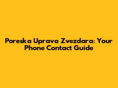 Poreska Uprava Zvezdara: Your Phone Contact Guide