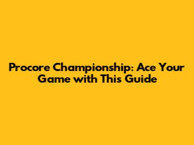 Procore Championship: Ace Your Game With This Guide