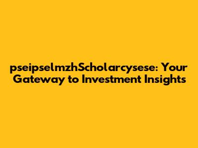 PseipselmzhScholarcysese: Your Investment Insights