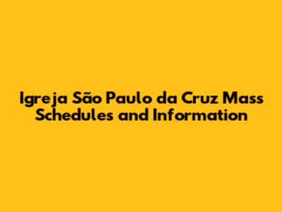 Hey guys! Are you looking for information about mass schedules at the Igreja São Paulo da Cruz? You've come to the right place! This article provides a comprehensive overview of everything you need to know, including mass times, the church's history, special events, and more. Whether you're a regular parishioner or a first-time visitor, we've got you covered.