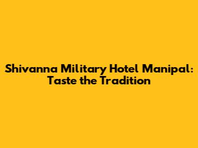 Hey guys! Today we're diving deep into a legendary spot in Manipal that's been serving up some seriously delicious food for ages: Shivanna Military Hotel. If you're a foodie or just looking for an authentic taste of local cuisine, you've gotta hear about this place. It's not just a restaurant; it's an institution, a place where tradition meets taste in the most amazing way. We're talking about flavors that have been perfected over generations, served in an atmosphere that’s as warm and inviting as the food itself. So, buckle up, because we're about to take your taste buds on a journey to Shivanna Military Hotel Manipal!
