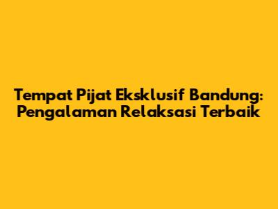 Bandung memiliki banyak pilihan tempat pijat eksklusif yang menawarkan pengalaman relaksasi yang luar biasa. Berikut adalah beberapa rekomendasi yang bisa Anda pertimbangkan: