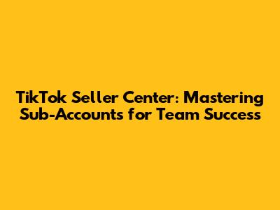 TikTok Seller Center: Master Sub-Accounts For Team Success