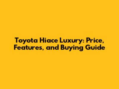 Toyota Hiace Luxury: Price, Features, And Buying Guide