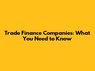 Trade Finance Companies: What You Need To Know