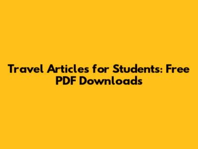 Travel Articles For Students: Free PDF Downloads