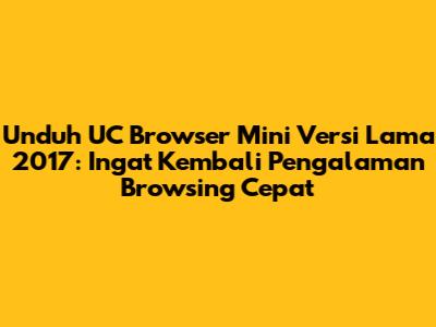 Wah, nostalgia banget, guys! Siapa di sini yang kangen sama UC Browser Mini versi lama 2017? Dulu, UC Browser Mini ini ibarat sahabat setia buat ngakser di internet, terutama buat kita yang pakai HP kentang atau kuota terbatas. Ukurannya yang super kecil dan performanya yang ngebut abis bikin dia jadi pilihan utama. Nah, buat kalian yang penasaran atau pengen balik lagi ke pengalaman browsing yang ringan dan efisien, artikel ini bakal ngasih tahu semua seluk-beluknya. Kita akan bahas kenapa sih versi lama ini begitu dicintai, gimana cara dapetinnya, dan apa aja sih kelebihannya yang bikin dia beda dari yang lain. Siap-siap nostalgia, ya!
