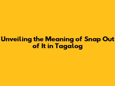 Hey guys! Ever heard someone tell you to "snap out of it"? It's a pretty common phrase in English, but what does it actually mean, and how do you say it in Tagalog? Well, let's dive right in and break down the isnap out of it meaning in tagalog. We'll explore the nuances, provide some examples, and even look at how Filipinos express similar sentiments. So, grab a cup of coffee (or kape!), and let's get started. Understanding this phrase can really help you understand Tagalog conversation and communication better!