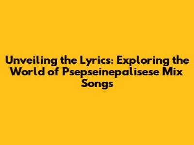 Unveiling The Lyrics: Exploring The World Of Psepseinepalisese Mix Songs